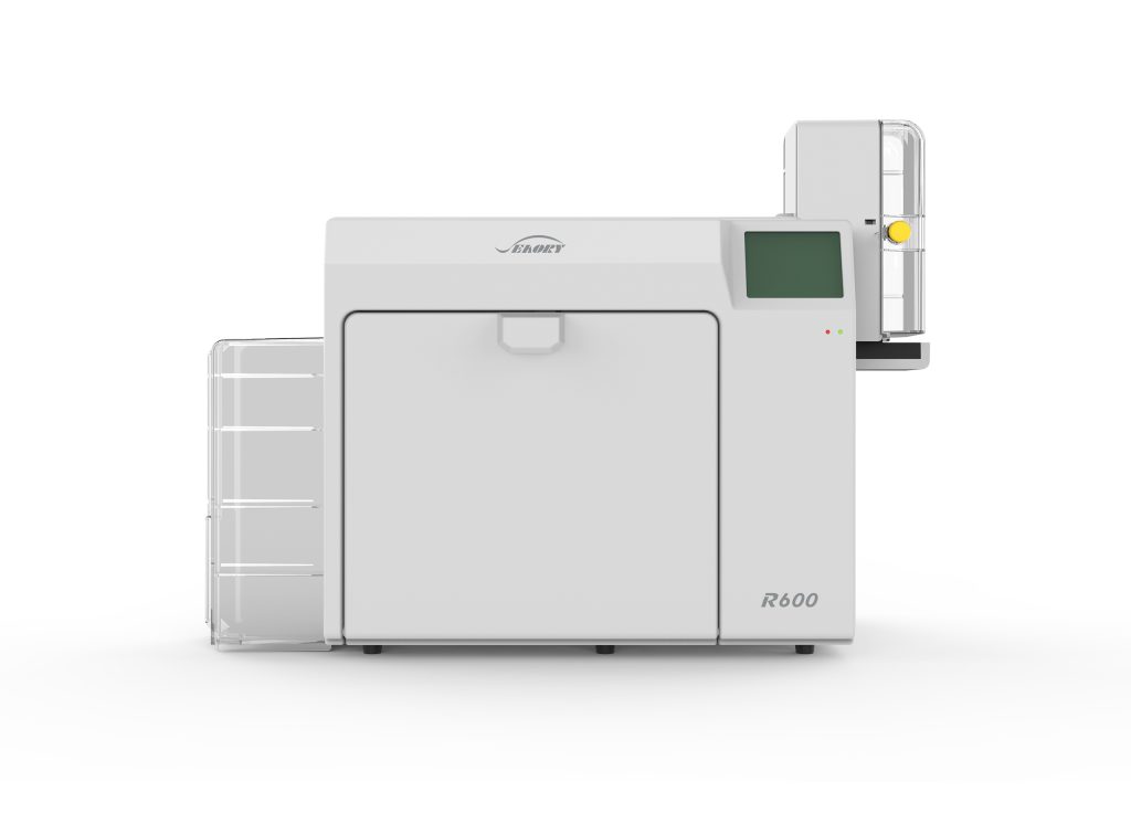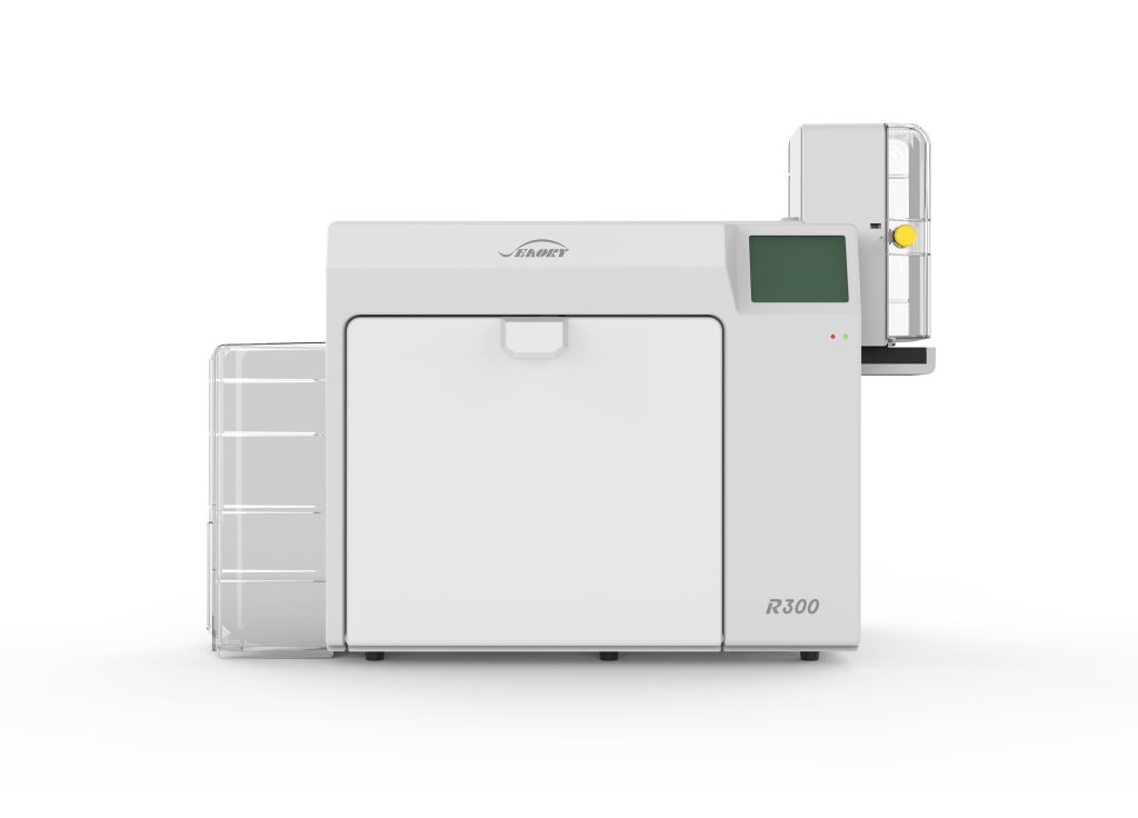 - Prints on a variety of card types including PVC, PET, and composite cards.